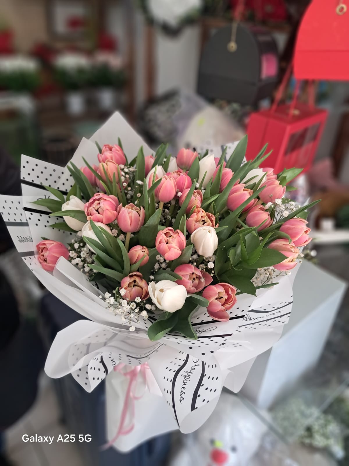 Fethiye’de pembe ve beyaz lalelerden hazırlanan bu buket, özel günler ve romantik sürprizler için ideal bir seçimdir. Her lale özenle seçilir ve usta ellerde aranjelenir. Buketin zarif renkleri, sevgi ve özeni en güzel şekilde yansıtır.